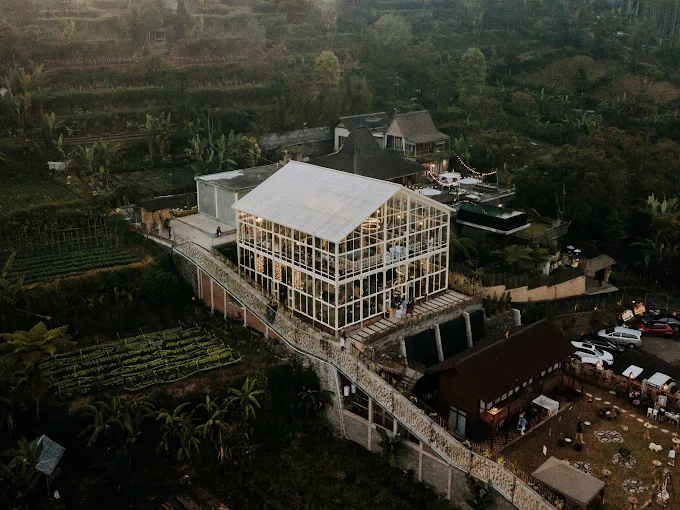 Spot pertama yang wajib lo datengin kalo lagi nyari Spot Bali Rasa Eropa adalah Rumah Gemuk. Awalnya tempat ini tuh wedding venue, tapi sekarang dibuka buat umum sebagai restoran. Konsepnya glasshouse atau rumah kaca yang penuh sama tanaman gantung, beneran ngasih vibes kayak lagi di conservatory garden di London atau Paris.