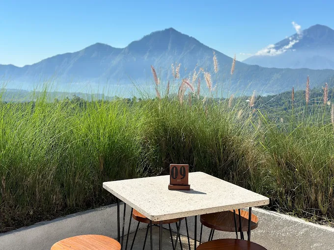 Kalo lo bangun pagi dan ngejar sunrise di Kintamani, lo wajib mampir ke Montana Del Cafe. Kenapa? Karena view Gunung Batur dari sini tuh beneran ngasih ilusi optik kayak lagi di Pegunungan Alpen, Swiss.