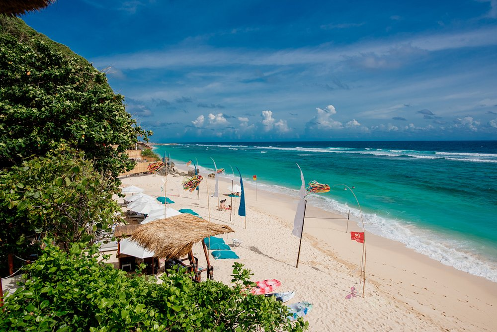 Lo mau ngerasain summer holiday ala Yunani atau Italia? Karma Kandara jawabannya. Lokasinya ada di Ungasan, di bawah tebing curam. Pas lo turun pake inclinator (lift tebing), lo bakal disambut sama pasir putih dan air laut yang birunya crystal clear.