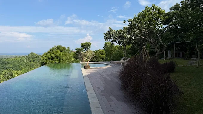 Hal pertama yang bikin aku speechless adalah main pool-nya. Sumpah, ini infinity pool tercantik yang pernah aku liat. Kalau pas lagi kabut turun, rasanya mistis tapi romantis. Tapi pas cerah, pantulan langit di air kolamnya tuh cakep banget buat foto.